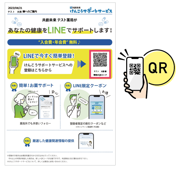 チラシに記載されている名前を確認し、QRコードを読み込みます。