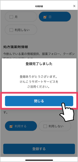 けんこうサポートサービスを「許可する」を押します。